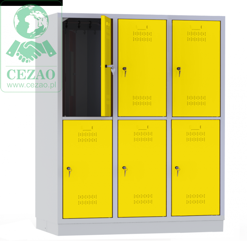 - Możliwe wyposażenie: półka na buty, szuflada na obuwie, otwór wrzutowy na dokumenty, daszek skośny, nóżki, kółka, stópki poziomujące, ławka , ławka oszczędzająca miejsce, numeracja drzwi, opaska na kluczyk, klucz master, drzwi pleksi, skarbczyk, pólka, drążek na wieszaczki do ubrania, przegroda wewnętrzna, lusterko, haczyk, wentylacja, perforacje, kotwy do ścian lub podłogi, system podwieszania szafki, wykonanie z innego rodzaju lub grubości blachy, inny rodzaj farby, inny rodzaj zamka np. kłódkowy, 3-punktowy, elektroniczny, magnesowy, depozytowy, szyfrowy lub inne