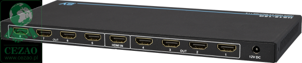 HS18-18G HDMI Splitter oferuje rozwiązanie do dystrybucji sygnałów HDMI poprzez podłączenie jednego źródła do ośmiu kolejnych wyjść.