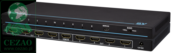 Wystarczająco mały, aby zmieścić się obok innych urządzeń, jest idealnym wyborem dla wszystkich wymagań dotyczących sygnału HDMI "1 wejście x 8 wyjść".