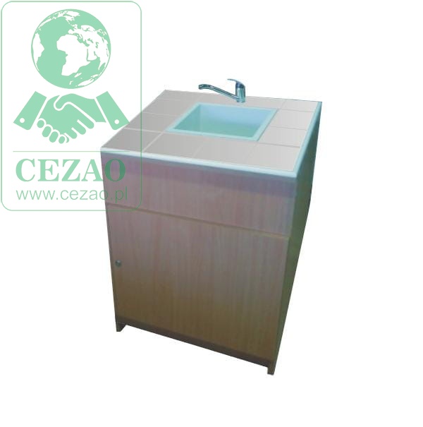Stolik laboratoryjny wynonany na konstrukcji płyta wiórowej laminowanej 18mm, wyposażony w blat pokryty płytkami ceramicznymi kwasoodpornymi, duży zlew, zawór wodny, drzwiczki. Stolik dostępny w kolorach biały, popiel, buk. Dodatkowe kolory na specjalne zamówienie.