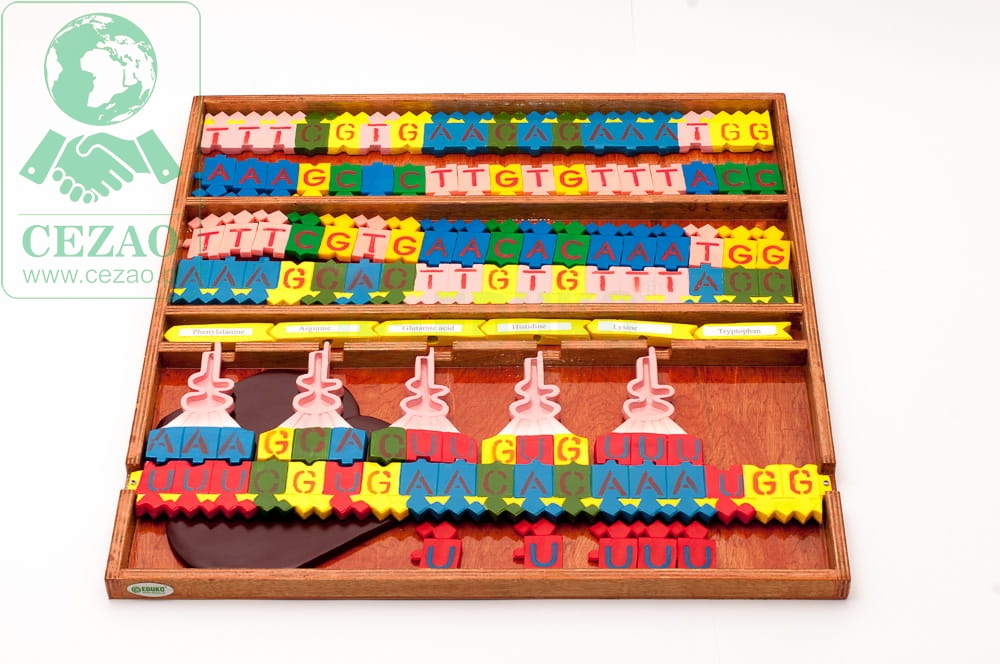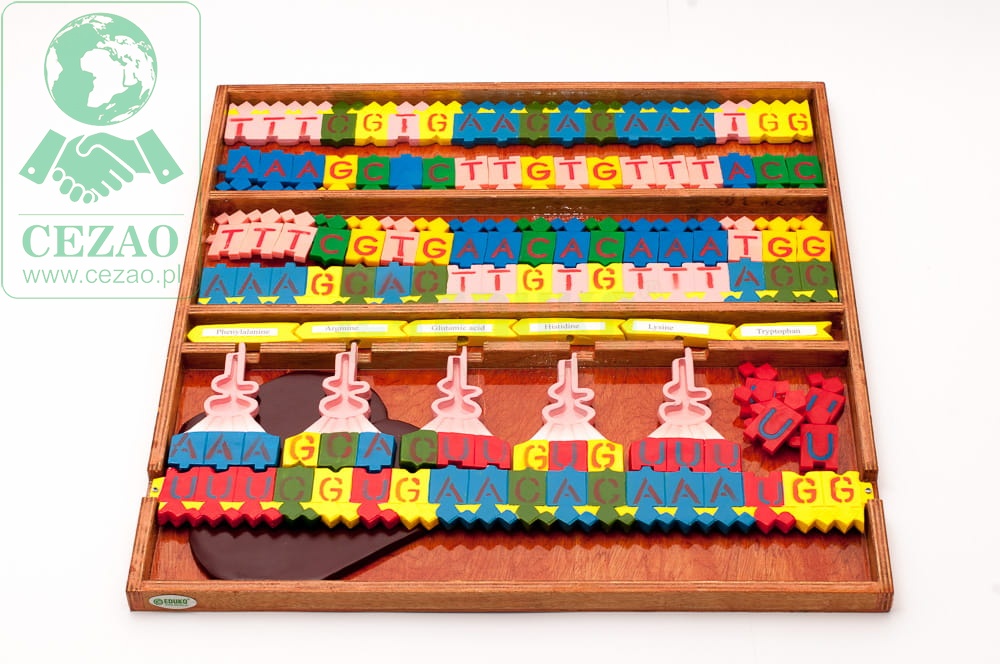Ten duży model funkcjonalny pomaga przybliżyć uczniom procesy replikacji, transkrypcji i translacji DNA. Dzięki przystępnej formie klocków uczniowie będą mieli okazję samodzielnie zgłębiać podstawowe prawa ekspresji informacji genetycznej. Model przybliży m.in. reguły łączenia się par zasad azotowych w DNA i RNA oraz kolejne kroki na drodze syntezy białek.