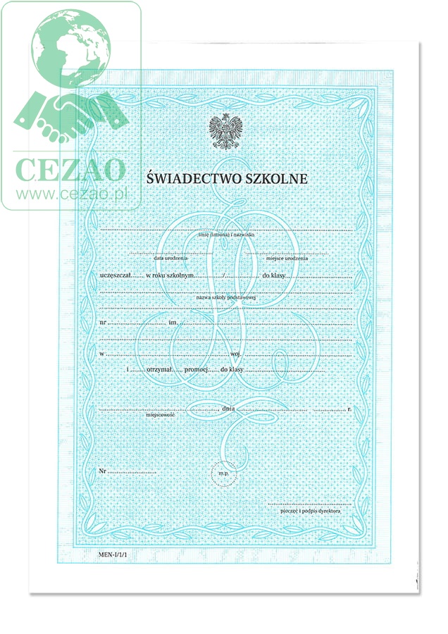 Świadectwo szkolne promocyjne szkoły podstawowej dla uczniów klas I–III (MEN-I/1/1)