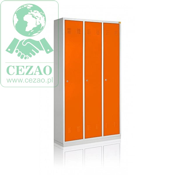 Wyposażona jest w każdym z trzech pionów w półkę górną i dolną na książki i przybory szkolne, wieszaki boczne oraz drążek na wieszaki ubraniowe. Wykonana jest z blachy czarnej o grubości 0,6 – 1,5 mm, malowana farbami proszkowymi (epoksydowo-poliestrowymi). Każde drzwi zamykane są zamkiem krzywkowym w systemie MASTER KEY. Całość osadzona na cokole wykonanym z blachy ocynkowanej (malowanej) o grubości 1.0 mm.