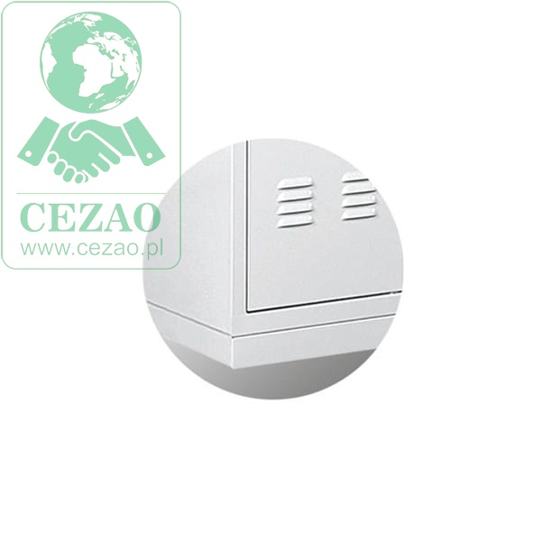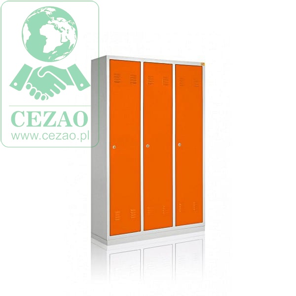 Wyposażona jest w każdym z trzech pionów w półkę górną i dolną na książki i przybory szkolne, wieszaki boczne oraz drążek na wieszaki ubraniowe. Wykonana jest z blachy czarnej o grubości 0,6 – 1,5 mm, malowana farbami proszkowymi (epoksydowo-poliestrowymi). Każde drzwi zamykane są zamkiem krzywkowym w systemie MASTER KEY. Całość osadzona na cokole wykonanym z blachy ocynkowanej (malowanej) o grubości 1.0 mm.