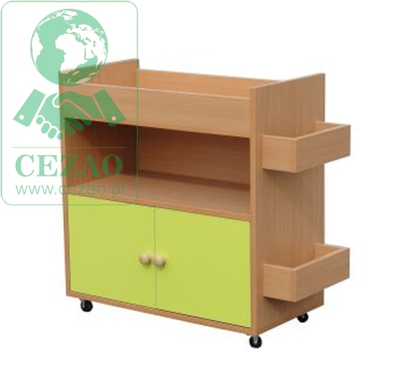 Szafka plastyczna z kolorowymi drzwiczkami. Idealna do przechowywania artykułów plastycznych.