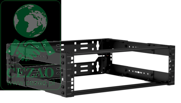 Ten model szkieletowej szafy rack wyróżnia regulowana głębokość, którą przy składaniu można w wygodny sposób ustalić wedle własnych preferencji między 300 a 450 mm, dostosowując ją do głębokości sąsiadujących z nią szaf i optymalnie wykorzystując dostępne miejsce. Szafa zawdzięcza wytrzymałość swojej konstrukcji zastosowaniu grubej na 2 mm stali, co z powodzeniem umożliwia umieszczenie w niej przewidzianych urządzeń jeszcze przed przetransportowaniem jej do docelowego miejsca jej instalacji. Perforowane profile montażowe na froncie i po obu bokach zapewniają jej wielofunkcyjność, a całość jest wykończona trwałą powłoką proszkową w kolorze czarnym (RAL9004). Szafa jest dostarczana w formie gotowego do złożenia zestawu, co ułatwia jej transport do nabywcy. Dzięki prostym rozwiązaniom konstrukcyjnym, do jej montażu w rekordowo krótkim czasie z powodzeniem wystarczy jedna osoba.