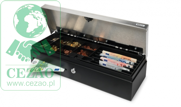UKŁAD Z 6 PRZEGRODAMI NA BANKNOTY I 8 PRZEGRÓDKAMI NA MONETY, GNIAZDO NA MEDIA