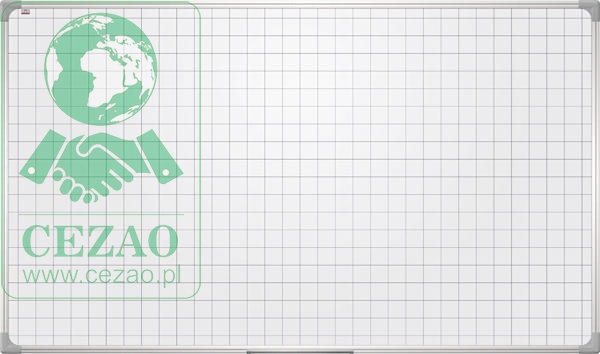 Powierzchnia ceramiczna, suchościeralno-magnetyczna. Stały nadruk kratki (5×5cm). Rama z profilu aluminiowego w kolorze srebrnym; plastikowe narożniki w kolorze popielatym.
