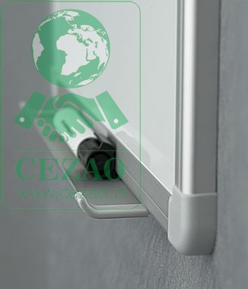 Powierzchnia ceramiczna (suchościeralna - magnetyczna), rama z profilu aluminiowego anodowana na kolor srebrny, plastikowe narożniki w kolorze popielatym, w komplecie półka na markery o długości 30 cm, marker i 3 magnesy oraz elementy mocujące.