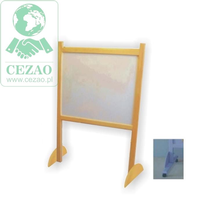 Tablica jezdna, służy jako tablica do pisania pisakiem suchościeralnym, magnetyczna, jednostronna. Wykonana z drewna litego, lakierowana. Kółka obrotowe umożliwiają przesuwanie tablicy.