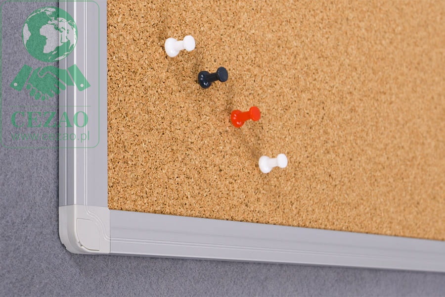 Tablica informacyjna, której powierzchnia wykonana jest z najwyższej jakości korka. Rama wykonana z profilu