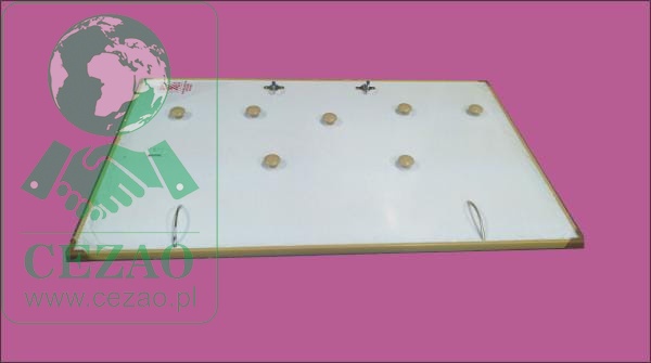 Tablica przeznaczona jest dla wszelkiego typu szkół jako oprzyrządowanie klasopracowni. Służy do mocowania trójkąta 45 plastik, trójkąta 60 plastik, kątomierza plastik, liniału 1m plastik, cyrkla plastik oraz trójnogu cyrkla.