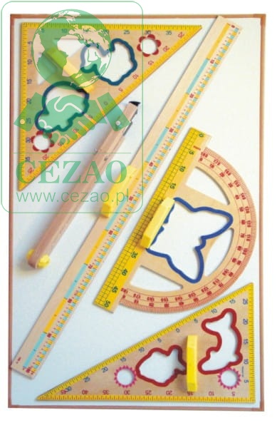 Przyrządy wykonane są ze sklejki wodoodpornej, trzykrotnie pokrytej farbą. Skala, odporna na ścieranie, naniesiona metodą sitodruku. Przyrządy posiadają wycięte ilustracje, które umożliwiają odwzorowanie kształtu na tablicy, przez co uatrakcyjniają naukę i zachęcają do częstego korzystania z nich na zajęciach.