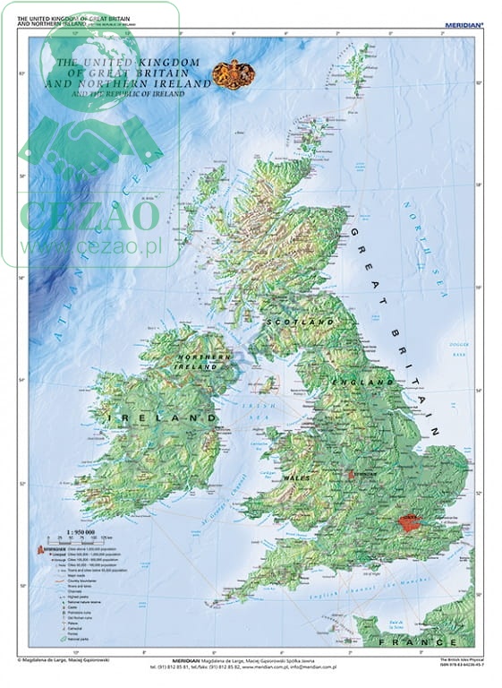 The British Isles Physical - mapa ścienna w języku angielskim 160x120