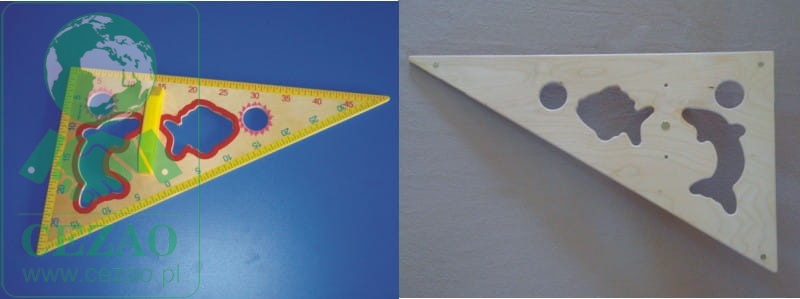 Przyrządy tablicowe przeznaczone są do nauki matematyki w klasach najmłodszych szkoły podstawowej. Przyrządy posiadają wycięte ilustracje, które umożliwiają odwzorowanie kształtu na tablicy, przez co uatrakcyjniają naukę i zachęcają do częstego korzystania z nich na zajęciach. Przyrządy magnetyczne posiadają zamocowane na stronie B magnesy.