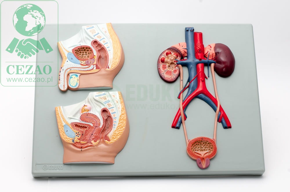 Model przedstawiający przekrój strzałkowy przez miednicę męską i żeńską oraz układ moczowy jest doskonałą pomocą dydaktyczną przeznaczoną na lekcje biologii w gimnazjach i liceach. Starannie wykonany z wysokiej jakości materiałów, kolorowy model pomoże uczniom zapoznać się z położeniem poszczególnych części układu moczowo– płciowego kobiet i mężczyzn. Na modelu firmy EDUKO doskonale widać różnicę w długości cewki moczowej.
