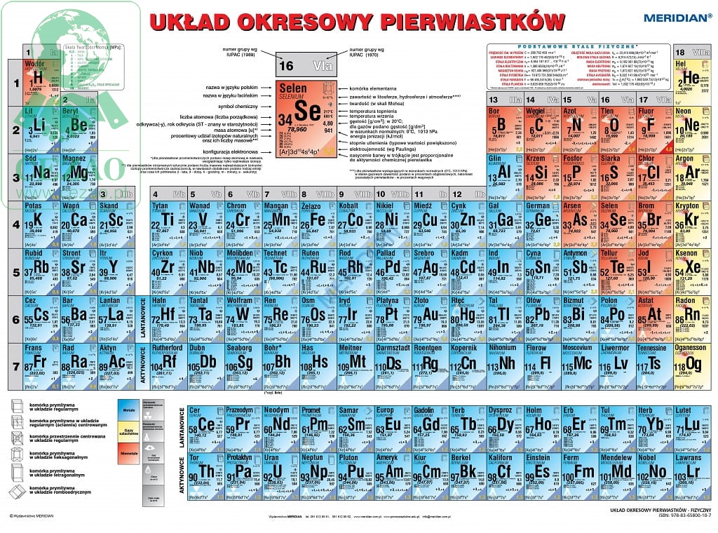 Układ okresowy pierwiastków strona fizyczna (2021) - ścienna plansza dydaktyczna 160 x 120
