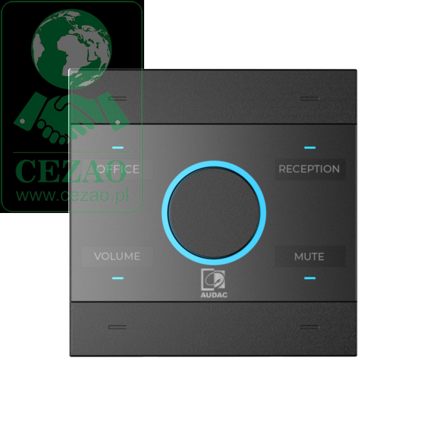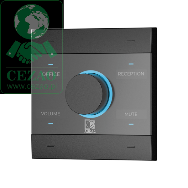 Konfiguracja funkcji przycisków i pokrętła jest całkowicie elastyczna, z pełną kompatybilnością wszystkich funkcji AUDAC Touch.
