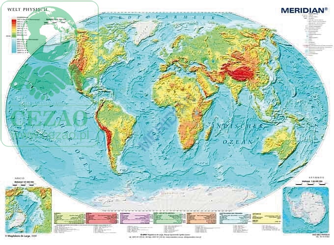 Welt physisch - ścienna mapa fizyczna świata w języku niemieckim 160 x 120