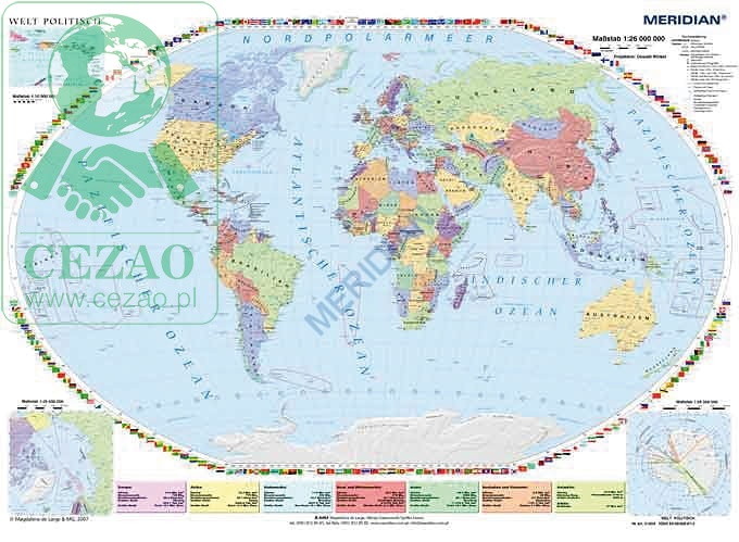 Ścienna mapa polityczna Świata w języku niemieckim.