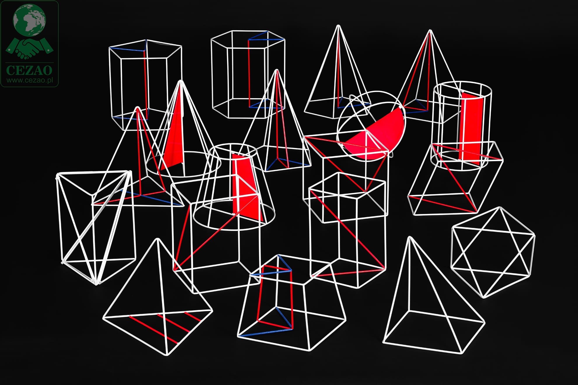 Wielkie bryły geometryczne szkieletowe.