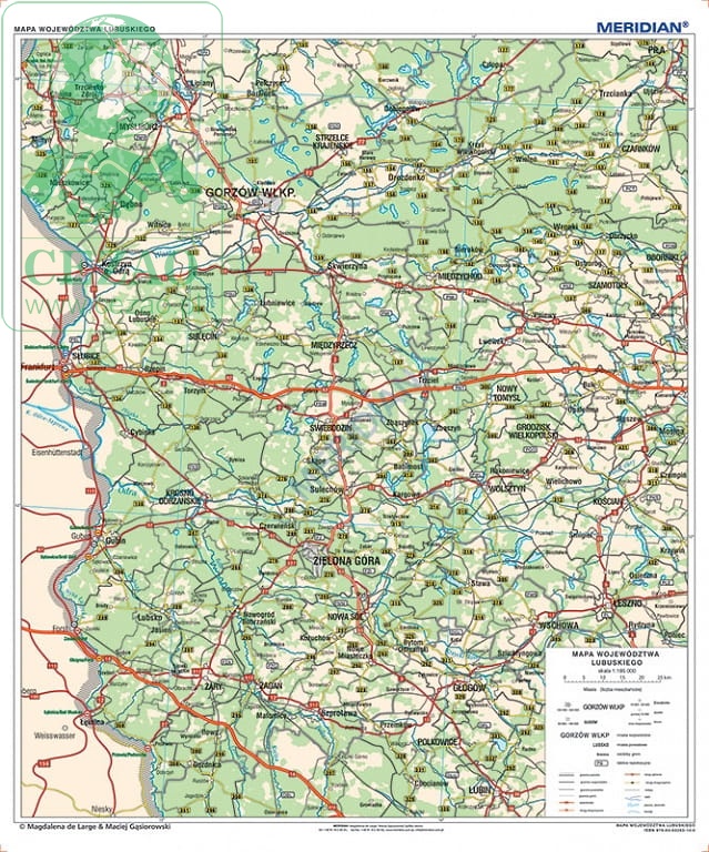 Woj. lubuskie - ścienna mapa administracyjno-samochodowa