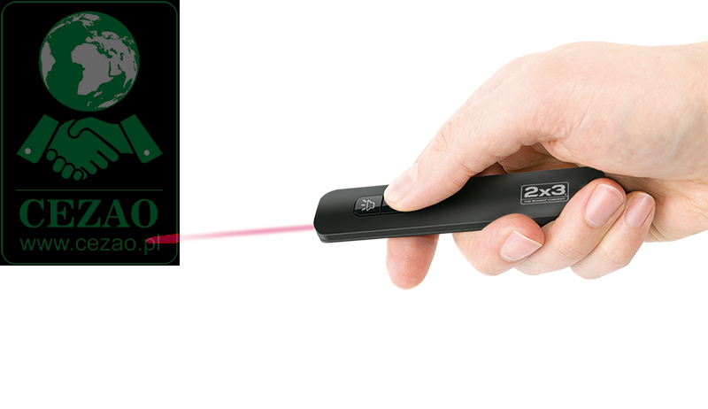 Elegancki, nowoczesny wskaźnik laserowy (o czerwonym promieniu) z funkcją latarki LED. Bardzo lekki i łatwy w obsłudze.