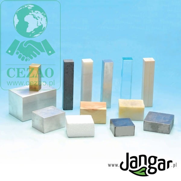 14 bloków różnych materiałów jest doskonałą pomocą dydaktyczną do prezentacji i omawiania na lekcji różnic i właściwości fizyczno-chemicznych ciał stałych. Bloki mają wymiary ok.: 50 x 40 x 30 mm (drewno, parafina twarda, aluminium, stal, styropian), 20 x 20 x 100 mm (pleksiglas, szkło, łupek, aluminium, drewno miękkie, marmur), 50 x 50 x 20 mm (ołów), 20 x 20 x 50 mm (mosiądz) oraz 40 x 40 x 20 mm (stal). Na podstawie tej pomocy dydaktycznej można też omawiać wady i zalety stosowania określonych materiałów w życiu codziennym, jak i przemyśle, jest więc przydatna zarówno w szkolnictwie ogólnokształcącym (przyroda, fizyka, chemia), jak i przy nauczaniu przedmiotów zawodowych.