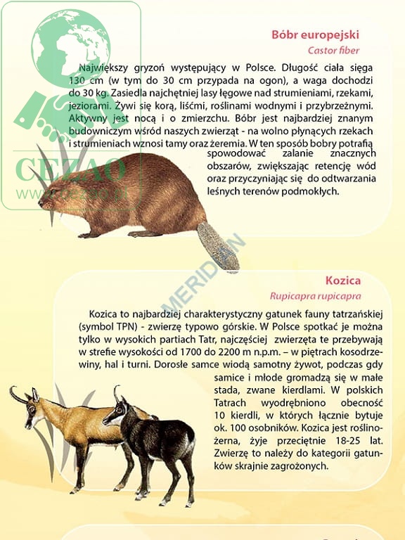Zwierzęta chronione w Polsce - ścienna plansza dydaktyczna 120x90
